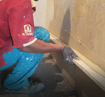 隱蔽工程驗(yàn)收合格后,泥工進(jìn)場補(bǔ)線槽局部修補(bǔ),衛(wèi)生間墻面防潮處理